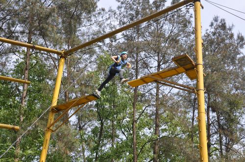 高空斷橋是一項考驗個人意志、激發(fā)個人潛能的活動。員工們幾乎都是第一次參加拓展培訓,站在8米高空要躍過斷橋,對很多人來說的確是不小的考驗,尤其是對女性更是一個挑戰(zhàn)。面對挑戰(zhàn),盡管恐懼,盡管猶豫,但沒有一個人退縮,他們勇敢的一跳,讓自己的潛能得到了充分的發(fā)揮。這就是拓展培訓的意義。信任背摔是個人與團體的協(xié)作項目,體現(xiàn)了個人只有把自己融入團體并真正相信團體,就能獲得成功的真諦。勇闖三關則是既體現(xiàn)了個人的技巧,又體現(xiàn)了隊員與隊員相互配合的項目,很有啟發(fā)意義。鼓動人心更是團隊協(xié)作的項目,隊員們在團結協(xié)作、互相配合中享受到了快樂。