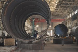“當(dāng)當(dāng)當(dāng)”一陣陣清脆的榔頭聲正招呼著這個(gè)火熱的夏季。原來(lái),這是冷作工師傅們正在實(shí)施現(xiàn)場(chǎng)接筒。他們是車間里的生力軍,就像在足球場(chǎng)上的前鋒一樣,需要沖鋒在前、攻城拔寨。接筒對(duì)冷作工來(lái)說是家常便飯,他們有時(shí)將筒體高高的疊起來(lái)連掛,有時(shí)又把筒體放倒在滾輪架上長(zhǎng)龍臥虎般地“鑲嵌”,他們手中的鐵錘就如同那射雕的彎弓,確定了目標(biāo)幾乎就沒有做不到的。他們這一身鐵打的功夫也是從汗水中磨礪出的,他們手上的每一個(gè)老繭都可以說是給他們的一個(gè)勛章。