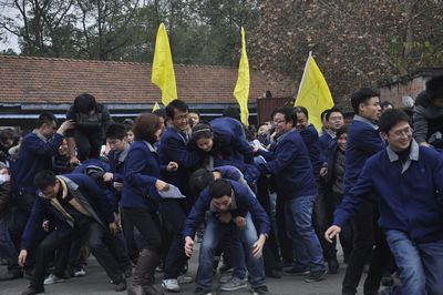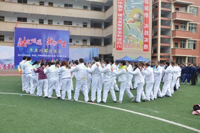廠慶大會(huì)結(jié)束后,在專業(yè)拓展訓(xùn)練公司教練的指揮帶領(lǐng)下,公司1200名員工分成12個(gè)訓(xùn)練方陣,每個(gè)方陣又分為A、B、C、D四支隊(duì)伍分別開展訓(xùn)練活動(dòng)。訓(xùn)練項(xiàng)目包括鼓動(dòng)人心、南極浮冰、搶灘登陸、我們是最棒的團(tuán)隊(duì)和團(tuán)隊(duì)動(dòng)力圈,其中前三項(xiàng)是小組任務(wù),第四項(xiàng)是團(tuán)隊(duì)任務(wù),最后一項(xiàng)是集體任務(wù)。所有項(xiàng)目都是依靠集體的力量和協(xié)調(diào)才能完成,這也是拓展訓(xùn)練所要達(dá)到的目的。尤其是團(tuán)隊(duì)動(dòng)力圈項(xiàng)目,1000多名員工圍成幾個(gè)同心圓,場面宏大,充分展示了團(tuán)隊(duì)的力量。