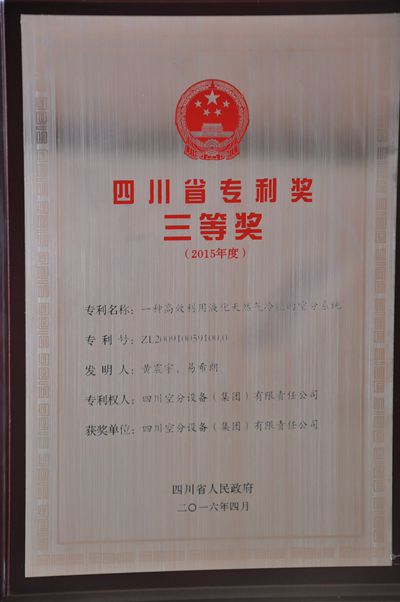 我公司黃震宇、易希朗的發(fā)明專利“一種高效利用液化天然氣冷能的空分系統(tǒng)”被四川省政府授予四川省專利三等獎(jiǎng)。