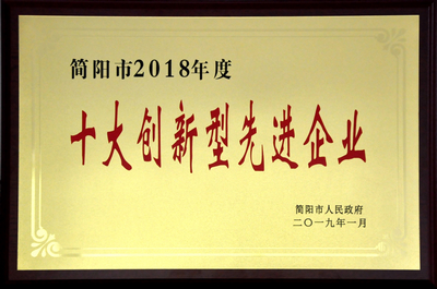 近日,我公司被簡(jiǎn)陽市人民政府授予簡(jiǎn)陽市2018年度“十大創(chuàng)新型先進(jìn)企業(yè)”。