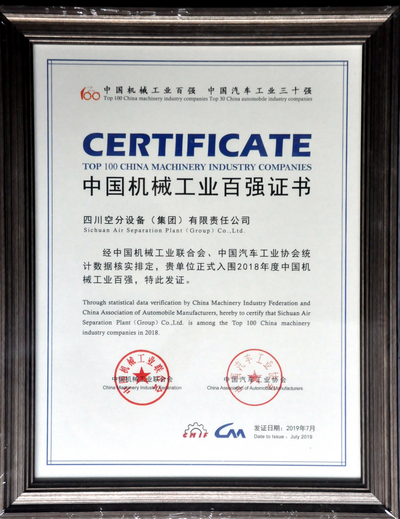 我公司已連續(xù)多年入圍“中國(guó)機(jī)械工業(yè)百?gòu)?qiáng)企業(yè)”且名次不斷提升。2018年排名第66位。