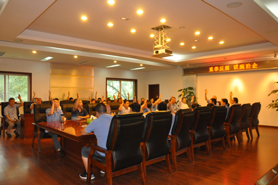 7月16日上午,(集團)公司在辦公樓二樓召開黨支部書記、分工會主席、團支部書記聯(lián)席會,會議由(集團)公司董事長、黨委書記、代行工會主席職務(wù)的單金銘先生主持。