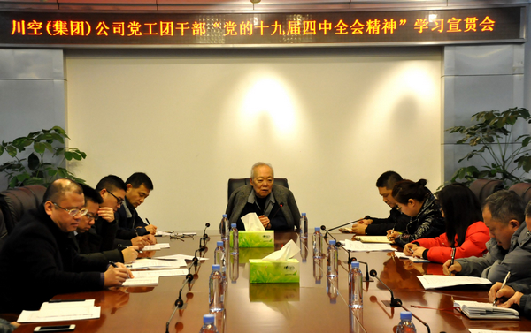 為深入學(xué)習(xí)貫徹黨的十九屆四中全會精神,結(jié)合上級黨組織、工會和團委的要求,12月6日上午,(集團)公司在辦公樓二樓會議室召開了黨工團干部“黨的十九屆四中全會精神”學(xué)習(xí)宣貫會。黨委書記單金銘作學(xué)習(xí)宣貫講話,公司各單位黨支部書記、分工會主席、團支部書記參加學(xué)習(xí)宣貫。