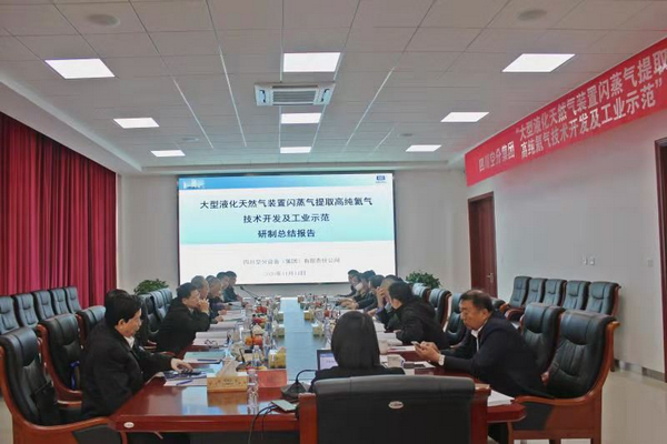 2020年11月13-14日,四川空分設(shè)備(集團(tuán))有限責(zé)任公司自主研發(fā)的“大型液化天然氣裝置閃蒸氣提取高純氦技術(shù)開(kāi)發(fā)及工業(yè)示范”項(xiàng)目在內(nèi)蒙鄂爾多斯杭錦旗現(xiàn)場(chǎng)順利通過(guò)科技成果鑒定,鑒定委員會(huì)認(rèn)為:該裝置是國(guó)內(nèi)首套年產(chǎn)百萬(wàn)方級(jí)氦氣的液化天然氣閃蒸氣提氦裝置,其主要性能指標(biāo)達(dá)國(guó)際先進(jìn)水平。