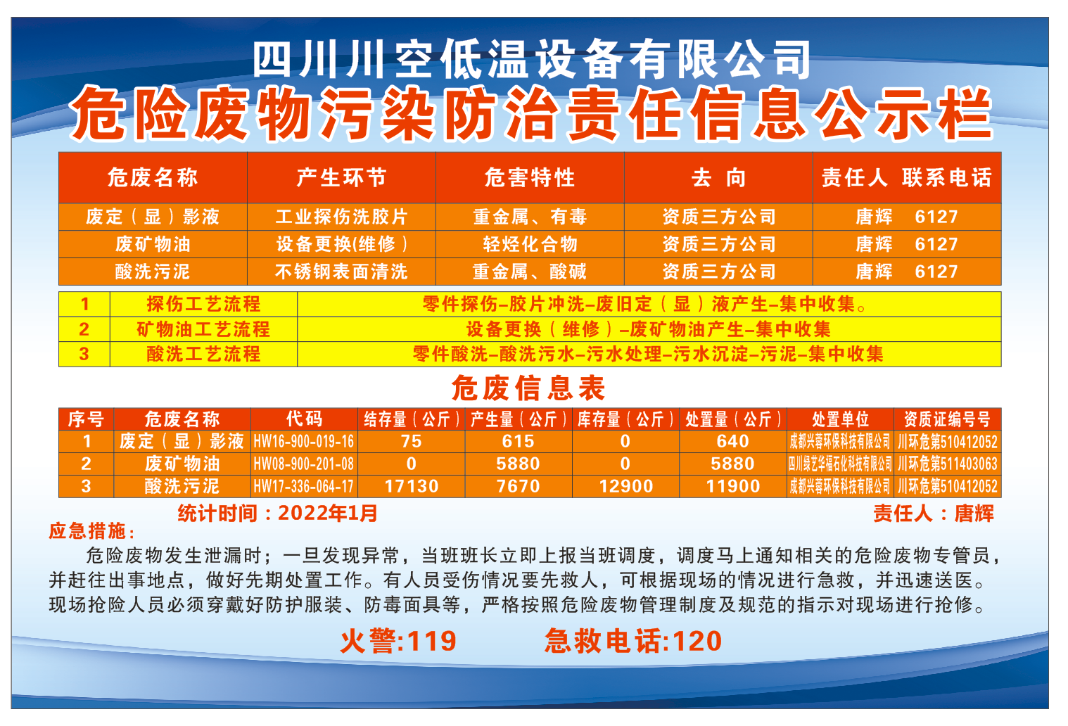 四川川空低溫設(shè)備有限公司——危險廢物污染防治責(zé)任信息公示欄
