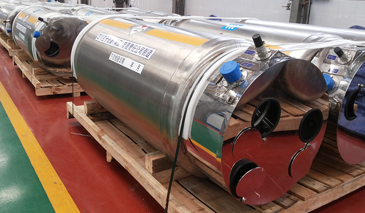 汽車用液化天然氣氣瓶 公司研發(fā)制造的150L—495L系列汽車用液化天然氣氣瓶。已經裝備到多個城市公交車、重卡、工程用車上。公司生產的低溫焊接絕熱氣瓶取得了B3類證書,具有蒸發(fā)率低,結構緊湊,操作簡便,安全可靠,氣液兩用的特點,適用于液氧、液氮、液氬等低溫液體儲存。