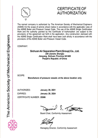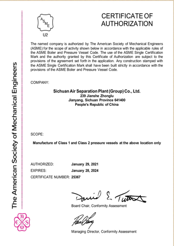 ASME授權證書U2